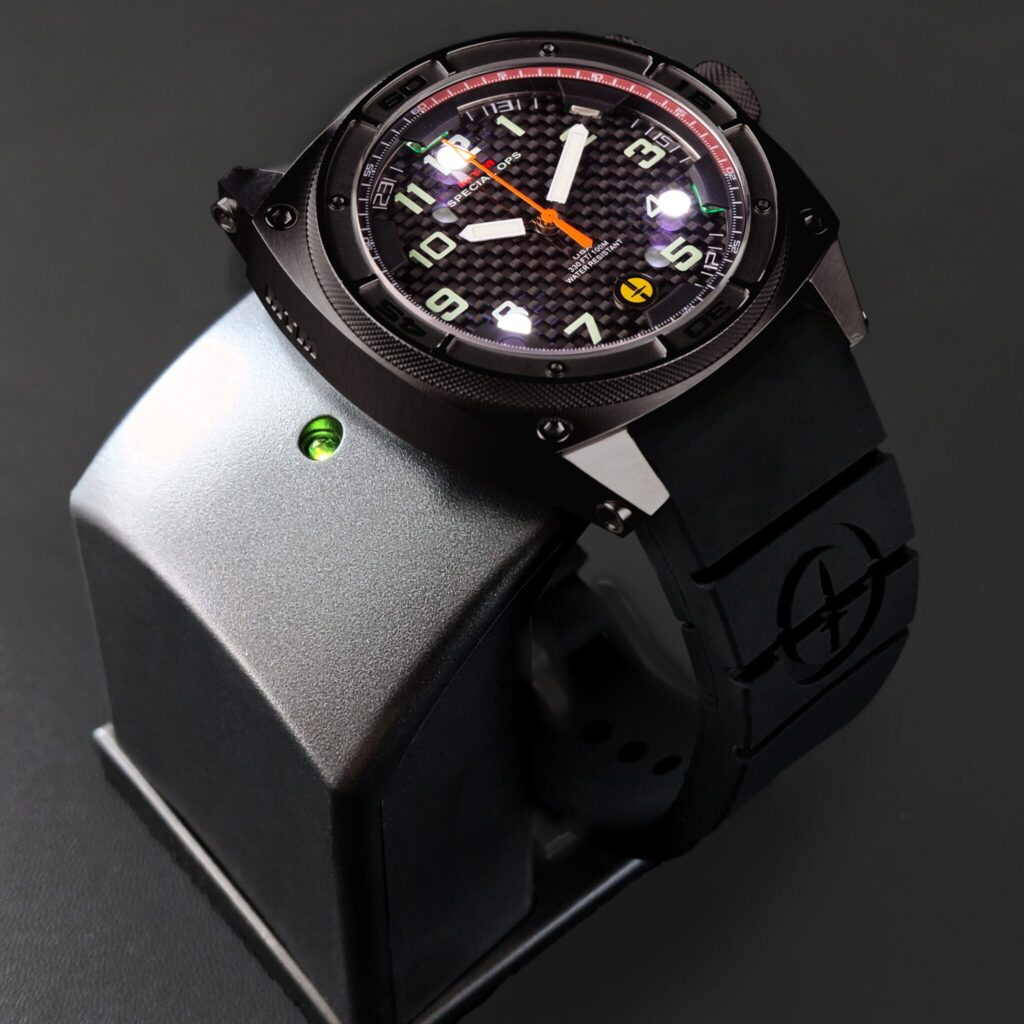 ساعة سبيشال أوبس بلاك فالكون هي الرائدة في ساعات إم تي إم ، المعروفة سابقًا باسم ساعة بلاك هووك. هذا النموذج المحدث مصنوع من التيتانيوم الصلب العسكري أو الفولاذ المقاوم للصدأ. مع نظام إضاءة داخلي وخارجي يوفر 3 إعدادات مختلفة لوضع الإضاءة، لا تخف من الوقوع في الظلام مع هذه الساعة على معصمك. يمكن لساعة بلاك فالكون أن تتحمل أصعب الظروف.