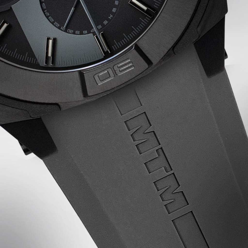 ستراب مطاط 3 محفور شعار إم تي إم عليه مصنوعة من المطاط الطبيعي بنسبة 100%، متينة ومريحة يمكن ارتداؤها واستبدالها بسهولة مع أي ساعة إم تي إم.
