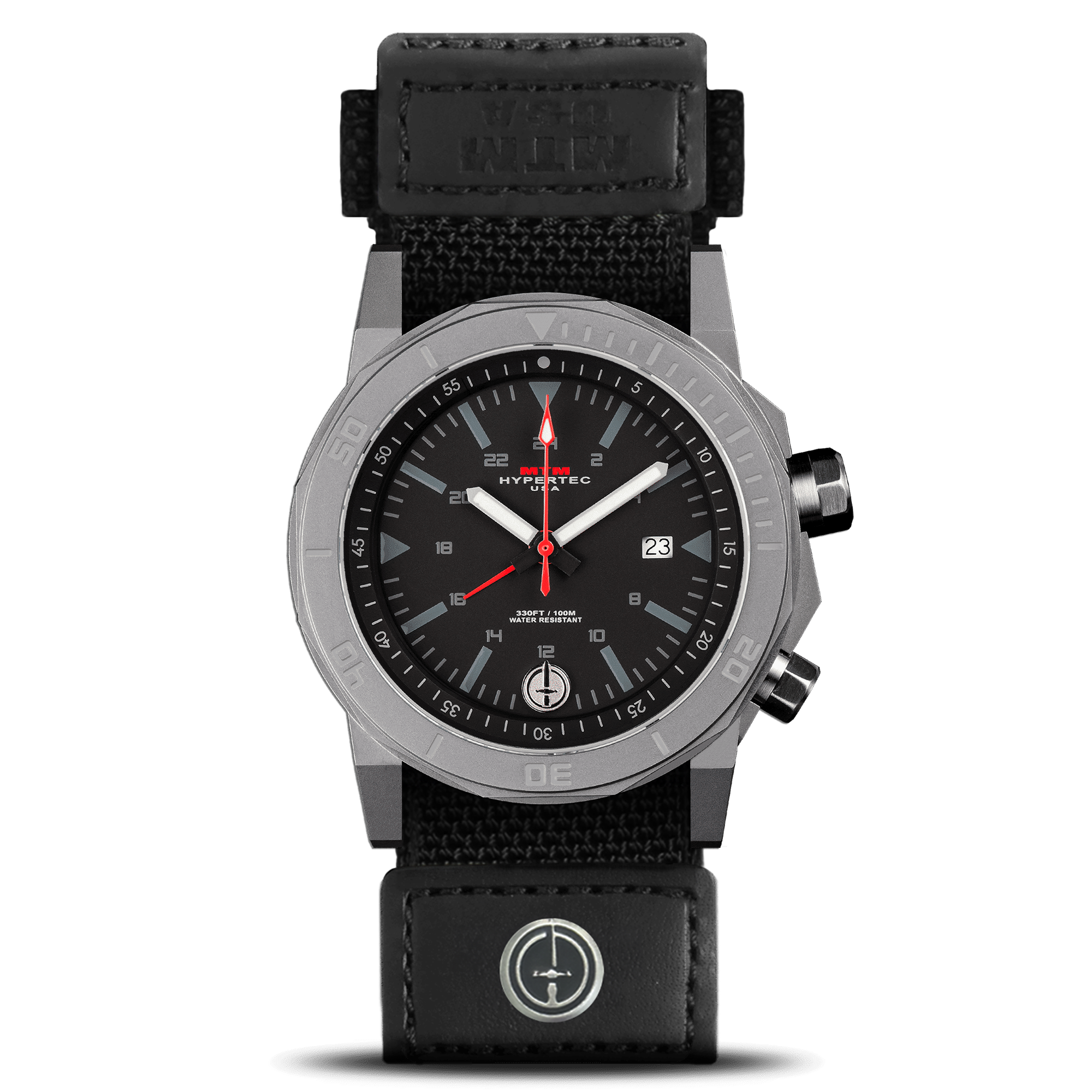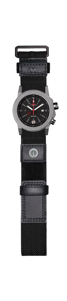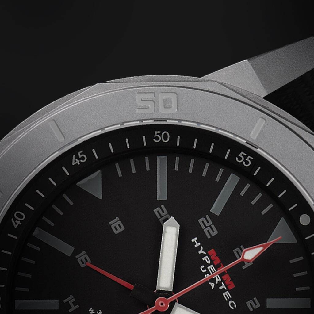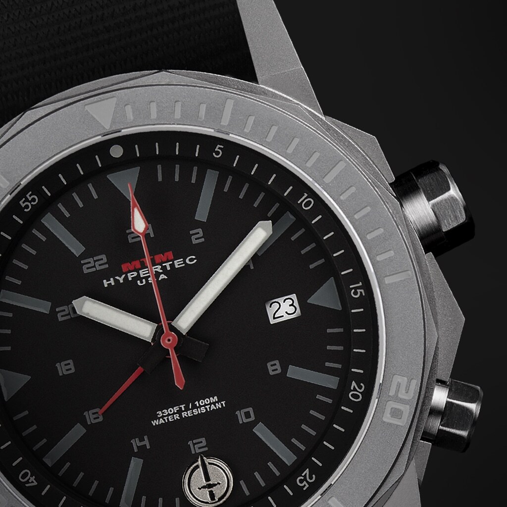 The brass dial combined with super luminous hands gives the Silver Hypertec H-61 a stunning look at all hours of the day. This Swiss movement watch incorporates a date window nestled into the brass dial and a 24-hour GMT indicator. Its unidirectional outer bezel and dual directional inner bezel can be used for tracking capabilities. The solid stainless steel 42mm case and sapphire crystal glass are strong enough to work underwater, up to 330 feet/100 meters, with no hassle.