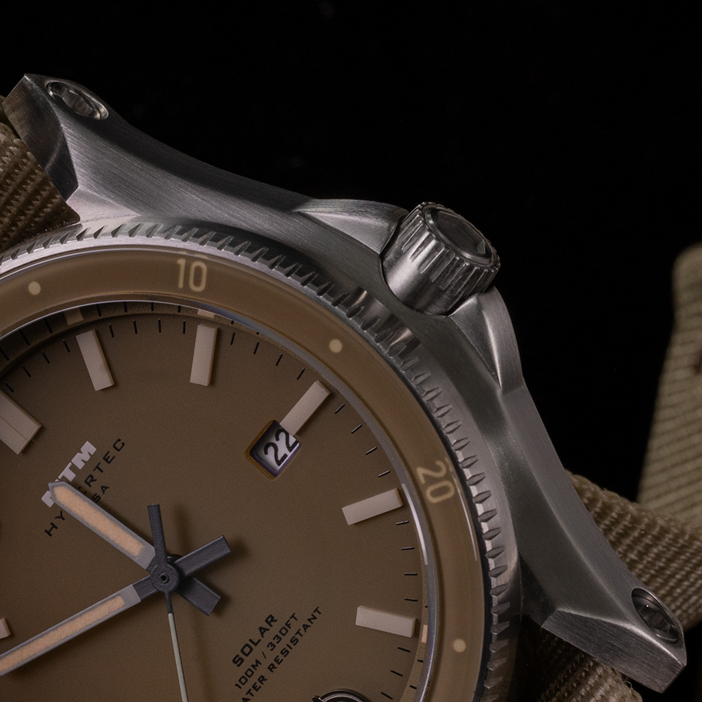 The latest to MTM’s collection is the new solar powered: Hypertec Solar. Built under the classic, clean cut Hypertec line that is enjoyed by many, This  black solar watch with blue accent dial and Blue Rubber Strap is stylish timepiece that features a rotating sapphire bezel with  a date window nestled into the dial. Operating off a solar cell, its clean energy source has no adverse effect on the environment. Charges by sunlight or the office’s ambient light. Order yours today and forget about battery replacements